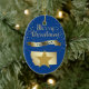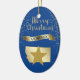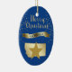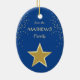 Schicken Sie ihnen etwas hübsches vom großen Staat Montana! An der Vorderseite dieses Ornaments befindet sich ein glänzendes goldfarbenes Silhouette-Bild des Staat mit einem dunkleren goldenen Stern. Über dem Staat und Sternbild ist die glitschige Nachricht MERRY CHRISTMAS in Skript, und ein Banner mit dem Text in blau MONTANA. Um das Ganze herum gibt es goldene Schneeflocken. Die Bilder und der Text werden auf einem tiefblauen Hintergrund platziert. Auf der Rückseite des Ornaments befinden sich Textfelder in hellem Gold, die Sie anpassen können, und ein zweites goldenes Sternbild. Sie können die Hintergrundfarbe ändern, wenn Sie möchten, indem Sie CUSTOMIZE wählen.