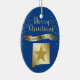 Gib ihnen etwas hübsches vom großen Staat von New Mexico! An der Vorderseite dieses Ornaments befindet sich ein glänzendes goldfarbenes Silhouette-Bild des Staat mit einem dunkleren goldenen Stern. Über dem Staat und Sternbild ist die glitschige Nachricht MERRY CHRISTMAS in Skript, und ein Banner mit dem Text in blau NEW MEXICO. Um das Ganze herum gibt es goldene Schneeflocken. Die Bilder und der Text werden auf einem tiefblauen Hintergrund platziert. Auf der Rückseite des Ornaments befinden sich Textfelder in hellem Gold, die Sie anpassen können, und ein zweites goldenes Sternbild. Sie können die Hintergrundfarbe ändern, wenn Sie möchten, indem Sie CUSTOMIZE wählen.