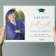 Invitation de remise de diplômes de photo minimaliste moderne avec typographie bleu et or, accent casquette de grade.