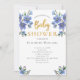 Blue Gold Watercolor Blume Kinderdusche Einladung