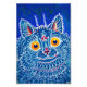 Foto Print mit Louis Wains Tiergemälde A Cat in Gothic Style (1860-1939). Eine psychedelisch blaue Katze sieht freundlich mit gelben Augen auf den Betrachter aus. Ein wunderbares Geschenk für Katzenliebhaber und englische Kunst.