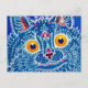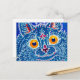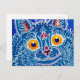 Postkarte mit Louis Wains Tiergemälde A Cat in Gothic Style (1860-1939). Eine psychedelisch blaue Katze sieht freundlich mit gelben Augen auf den Betrachter aus. Ein wunderbares Geschenk für Katzenliebhaber und englische Kunst.
