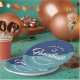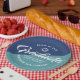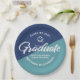 Be proud, rejoice and showcase this milestone of your favorite grad! Celebrate with these simple, modern yet retro, minimal custom paper plates. Bold, graphic, white handwritten script calligraphy, sans serif typography and a white hand drawn grad cap icon overlay both a dusty turquoise and navy blue background. Personalize the custom text with your grad’s name and address. Personalize the custom text with your graduate’s name, class year and school or special message. Available in 2 sizes: 7” or 9”, round or square. Matching invites, thank you cards, hand fans, banners, yard signs and other graduation goodies are also available in this retro and trendy collection. Guaranteed to add stylish fun to their special party!