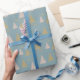Blue Gray Gold Glitzer Shine Christmas Trees Geschenkpapier