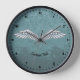 Weite offene blaugraue Flügel Illustration. Grunge blauer Hintergrund. Eigener Text.