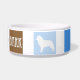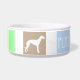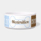 Great dog bowl customized with your canine companion's name, all done in fun light and medium hues of blue and brown with a hint of green and white. This coordinates with our monogrammed leather bag for the traveling dog.