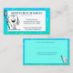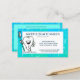 Blue Green Dentist Nomination et Carte de visite. L'Arrière - plan a des symboles de dentisterie bleu et blanc et une dent mignonne tenant une brosse à dents. Envoyez à vos patients à la maison un carte de visite et la prochaine date de rendez-vous.