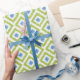 Blue Green Diamonds Ikat Pattern Geschenkpapier