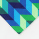 Eine kleine Fleecedecke in farbenfroher, ombre-Muster von Chevrons in Kalkgrün, königlich-türkis, ozeanblau und himmelblau.