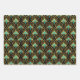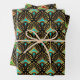 This Art-deco pattern features a stunning combination of blue and gold on a black background, as well as red and gold on black, and green and gold on black. Its versatile design makes it the perfect wrapping pattern for any occasion.