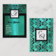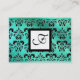 BLUE GREEN SILK DAMASK CLOTH ,SQUARE MONOGRAMM VISITENKARTE
