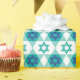 Dieses festliche Papier ist für jüdische Feiertage und Feierlichkeiten konzipiert und besticht durch ein David-Muster in lebhaften Blau- und Grüntönen. Die Sterne sind auf einem weißen Hintergrund angeordnet, wodurch eine frische, farbenfrohe Touch für Hanukkah, Bar oder Bat Mitzvahs und andere besondere Anlässe geschaffen wird. Diese Verpackung verbindet Tradition mit einem modernen, fröhlichen Stil.