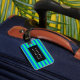 Sehr einfaches und modernes Design. Dieses Gepäckanhänger ist perfekt für jemanden, dem Lieben entzogen wurden. Die blauen und grünen Streifen können in beliebiger Farbe bearbeitet werden.