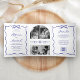 Blue Hand Drawn Bow QR Code Photo Wedding Dreifach Gefaltete Einladung