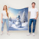 Beautiful Blue Hat Snowman Holiday Fleece Blanket