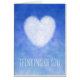 Diese "Thinking of You"-Grußkarte zeichnet sich durch ein originelles Kunstdesign mit einem weichen, blauen Himmelshintergrund und einem flauschigen weißen Herz aus. Es hat einen ruhigen, friedlichen Look und ist als Beileid-Karte geeignet, oder einfach um einen Freund lassen wissen, dass Sie in ihren Gedanken sind. Sie können das Aussehen des Schriftartes ändern, wenn Sie es vorziehen, indem Sie die Funktion Anpassen verwenden.