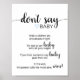 Dieses blaue, schwarze Kalligraphiezeichen "Don't Say Baby" ist das perfekte interaktive Spiel für eine rustikale oder moderne Babydusche. Das minimalistische Design für einen kleinen Jungen besticht durch moderne Typografie und ein dezentes pastellblaues Herz.