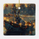 Set segelt mit dieser sehr detaillierten Abbildung in den Zauber der Urlaubssaison und zeigt einen stolzen Hund, der in einem festlich dekorierten Boot sitzt und über einen ruhigen Weihnachtssee gleitet. Die Lichter der nahen Kiefernbäume reflektieren das Wasser und warmen, festlichen Glanz, der das gemütliche Ambiente verstärkt. Die Ornamente versetzen sich von den Seiten des Bootes, während die Laternen leuchten und eine Szene schaffen, die das wahre Wesen der Weihnachtswärme und -freude einfängt. Dieses nostalgische Kunstwerk bringt eine Touch von Urlaubsmagie in jeden Raum, perfekt für diejenigen, die den Geist der Saison schätzen.