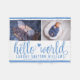 Diese Decke ist ein perfekter Sake für Ihr Neugeborenes. Es enthält handgeschriebene "Hello World" zusammen mit dem Namen Ihres neuen Babys, gefolgt von den Geburtsdaten. Die Decke hat auch zwei Bilder, die Sie haben können.