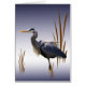 Diese Karte zeigt den Großen Blauen Heron, einen großen Wattenvogel in der Heronfamilie Ardeidae, gemeinsam an den Ufern des offenen Wassers und in Feuchtgebieten. Er ist der größte nordamerikanische Held. Zu den bemerkenswerten Merkmalen zählen Latschfedern, rot-braune Oberschenkel und ein paarweise rot-brauner und schwarzer Streifen auf den Flanken; der Hals ist rostig grau, schwarz-weiß streut die Vorderseite ab; der Kopf ist blasser, mit fast weißem Gesicht, und ein Paar schwarzer Schwaden, die von knapp über dem Auge bis zum Hinterkopf laufen. Die Federn am unteren Hals sind lang und plume-ähnlich. Da dies die Brutzeit ist, hat er auch Trachten auf dem unteren Rücken und eine orangefarbene Rechnung. Er ist in flachem Wasser stehend, und seine Federn werden durch das helle Sonnenlicht wieder beleuchtet.