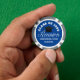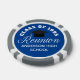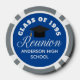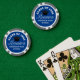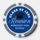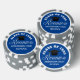 Custom class reunion party favor poker chips in blue and white for a high school, college, or university. Customize with your school name and graduating class under the elegant calligraphy for great personalized alumni celebration gifts.