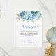 Blue Hydrangea Baby Dusche Dankeskarte