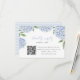 Cette belle carte de boîtier mariage, qui fait partie de la collection Blue Hydrangea Blooms, présente des fleurs d'hydrangée bleue, un code QR personnalisé et votre texte. L'inverse est une mince bande aquarelle, qui peut être supprimée pour une couleur solide. Utilisez le modèle pour remplir vos informations. La fonction "Personnaliser plus loin" permet de modifier la police (taille, style, couleur), d'ajouter des lignes de texte, de modifier la disposition et d'ajouter du texte à l'arrière.