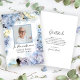 Erleben Sie die Erinnerung an Ihre Liebsten, nachdem sie bei ihrer Feier des Lebens Memorial mit der eleganten Blue Hydrangea Blume Watercolor Beileid Flat Dankeschön Note Card. Diese elegante, individuell gestaltete Begräbnisprämie mit Blütenbild aus hellblauen Hydrangea-Blume mit weißem Hintergrund zeichnet sich durch eine digital lackierte Aquarellfoto aus.