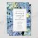 Erleben Sie die Hochzeitszeremonie und den Empfang im Sommer oder im Garten mit der Blauen Hydrangea Floral Wedding Einladung. Dieses hübsche Brauchtum mit Blütenpracht zeigt ein digital gemaltes Blumenfoto einer blauen Hydrangea-Blume mit gelben Highlights. Erhältlich als gedruckte Einladung zum Verschicken oder als digitaler Download für den einfachen digitalen Austausch online.