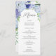 Schauen Sie sich Ihr köstliches Menü auf diesen schönen Karten an - perfekte Größe für jeden Teller! Dieses Design zeichnet sich durch einen hübschen Script-Schriftart und wunderschöne blaue Hydrangeas aus. Editieren Sie einfach die Essensartikel!