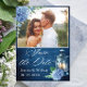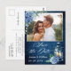 Blaue Hydrangea auf rustikalem blauen Holz mit klassischer Laterne. Save the Date Postkarte. Für weitere Anpassungen klicken Sie bitte auf den Link "Anpassen" und verwenden Sie unser Designwerkzeug, um diese Vorlage zu ändern. Wenn Sie eine Anpassung oder Anpassung benötigen, kontaktieren Sie mich bitte.