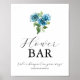 Blue Hydrangea Wedding Flower Bar Signs Poster