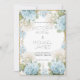 Herrliche und elegante Wasserfarben, blau-weiße Hydrangeas in sanften Wasserfarben schaffen diese Einladung für jede Jahreszeit. Imitate goldene Rahmen auf der Vorderseite und umgekehrt dieser schönen Einladung verleihen ihrer Schönheit. 100% Kundenzufriedenheit mit Zazzle jeden Tag.