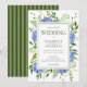 Diese Hochzeitseinladung mit mehrfarbigen blauen Hydrangeas, fließendem Laub und koordinierendem grünen gestreiften Rücken ist sowohl modern als auch skurril. Es ist perfekt für jeden, der eine Frühlings- oder Sommerhochzeit feiert! In Sekunden können Sie Ihre schönen Einladungen sehen. Die Vorlagen sind sehr einfach zu bedienen. Wählen Sie einfach Personalisieren Sie diese Vorlage, geben Sie Ihre Informationen ein und voilà - Ihre einzigartigen und wunderschönen Einladungen sind fertig!
