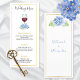 Blue Hydrangeas Wine Glass Wedding Flat Menu Menükarte