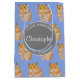 Diese Geschenktasche ist in einem niedlichen, blauen Hamstermuster gestaltet und mit einem flauschigen Hamster auf blauem Hintergrund versehen. Sie können diesem Design einen Namen hinzufügen, der auch den Text "I Liebe Hamsters" enthält