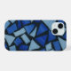 Dieses Handy der Marke Zazzle ist mit einem simulierten Mosaikmuster aus Buntglas in den Farben Blau und Schwarz gemustert. Wählen Sie aus schlanken oder harten Stilen für eine Vielzahl von Modellen für iPhones. Wählen Sie Ihre aus dem Drop-Down-Menü.