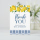 Ein wunderschönes Zitronen-Brautparty danke Ihnen Karte mit Zitronen und blau-weiß italienischen mediterranen Fliesen. Personalisieren Sie es, um Ihren Brautparty Gäste zu danken. Entworfen für Sie von BlackBerry Boulevard.