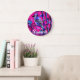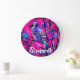Blue Jay Bird Tree Branch Pink Personalized Große Wanduhr