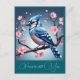 EINE ATEMBERAUBENDE BLAUE JAY LIEGT STOLZ AUF EINER DELIKATEN KIRCHENBRANCHE, UMGEBEN VON LUSH GRÜNEN BLÄTTER UND VIBRANTEN PINKBLÜTTEN.
