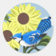 Vogel Aufkleber mit Blue Jay und Sonnenblumen.