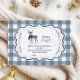 Feiern Sie im gemütlichen Winterstil mit dieser charmanten Baby-Dusche-Einladung. Ein süßer Rentier steht im Zentrum eines klassisch blauen karierten Hintergrundes, gerahmt von einem skallopierten Label mit Vintagem Flair - ideal, um während der Ferienzeit einen kleinen Jungen zu empfangen.