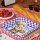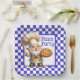 Eine blaue Karo Pizza Party Gnome Paper Plate