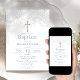 Laden Sie Ihre Familie und Freunde ein, um einen besonderen Augenblick mit unserer schönen Taufe-Einladung zu feiern. Der elegante Spitzenprint und der goldene Effekt-Kruzifix auf einem sauberen, weißen Hintergrund, gepaart mit der stylischen, staubblauen Schrift und umgekehrt, verleihen einem raffinierten Charme. Die Einladung ist für eine einfache Personalisierung vorbereitet, sodass Sie Ihre eigene, einzigartige Touch hinzufügen und diese Veranstaltung zu einem unvergesslichen Erlebnis machen können. Lass diesem Set den Ton für eine gesegnete und unvergessliche Taufe. Außerdem, mit der Möglichkeit, dieses Design sofort herunterzuladen, können Sie sie in kürzester Zeit verschicken!
