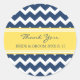 Hochzeit Danke, dass Sie Anhänger Aufkleber in elegantem dunkelmarineblau, Zitronengelb und Weiß Spaß und Retro Zickzag Zickzack Streifen Muster bevorzugen. Eine großartige Art, Gastgeschenke Hochzeiten zu dekorieren oder Hochzeitswein zu etikettieren.
