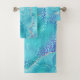 Blue Leopard Agate Gold Glitter Design Badhandtuch Set