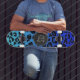 Blue Leopard Print; Chalkboard-Look Skateboard