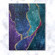 Genießen Sie dieses elegante Design mit farbenfrohen Blautönen, lila und Aqua-Adern in Metallic-goldenen Folienadern und funkelnd Sternen.