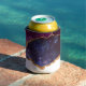 Kann kühler mit einem abstrakten Design mit blauen und lila Schichten mit Imitaten goldenen Folienbänder dazwischen.