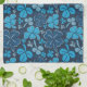 Blue Lucky Kleeblatt Clover St. Patrick`s Day Küchentuch. Handgezeichnet Nelken mit vier Blätter für das Glück.